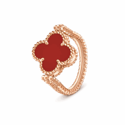 Каблучка Vintage Alhambra (двостороння), золото 750 проби, інкрустована діамантом круглої огранки загальною вагою 0,04 карата та натуральним сердоліком.