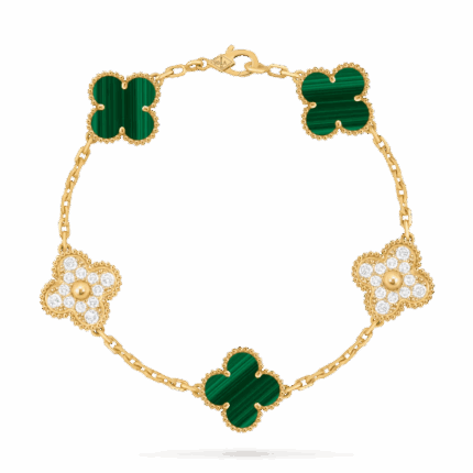 Браслет Vintage Alhambra, 5 мотивів з малахітом
