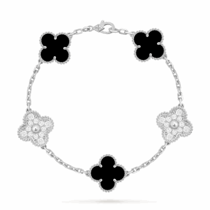Браслет Vintage Alhambra, 5 мотивів з оніксом та діамантами 0,96 ct
