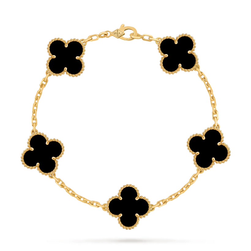 Браслет Vintage Alhambra, 5 мотивів, золото, інкрустований оніксом. Довжина браслету 19 см