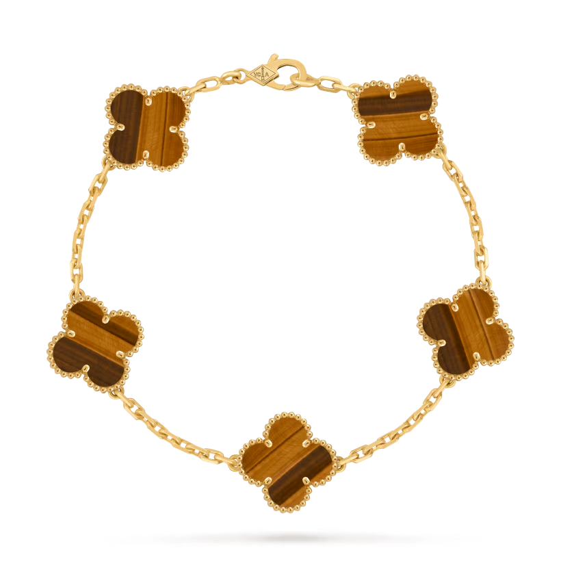 Браслет Vintage Alhambra, 5 мотивів з тигровим оком
