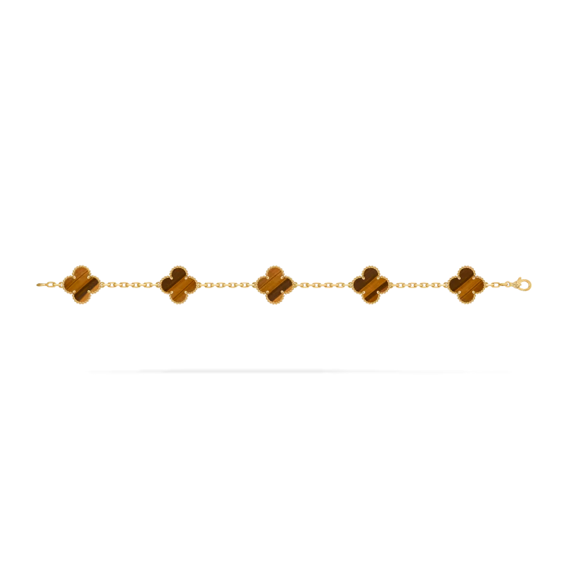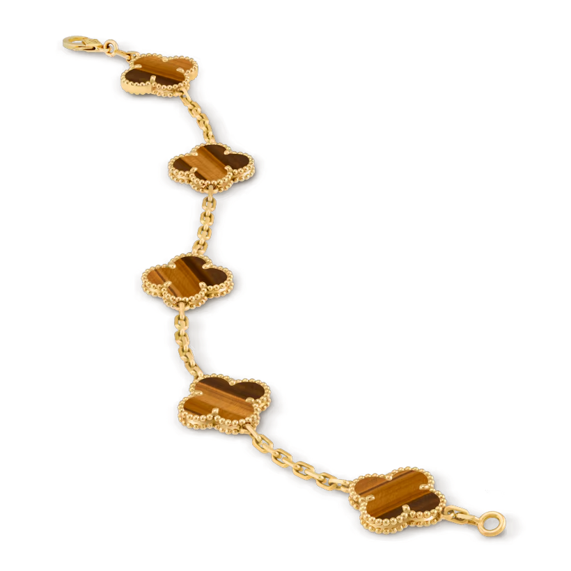 Браслет Vintage Alhambra, 5 мотивів, золото, натуральним каменем тигрове око. Довжина браслету 19 см