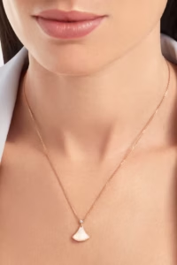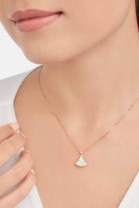 У цьому виконанні перламутр дає м’яке внутрішнє сяйво й міняє відтінок на світлі; діаманти окреслюють чистий сяйний контур навіть у спокої.