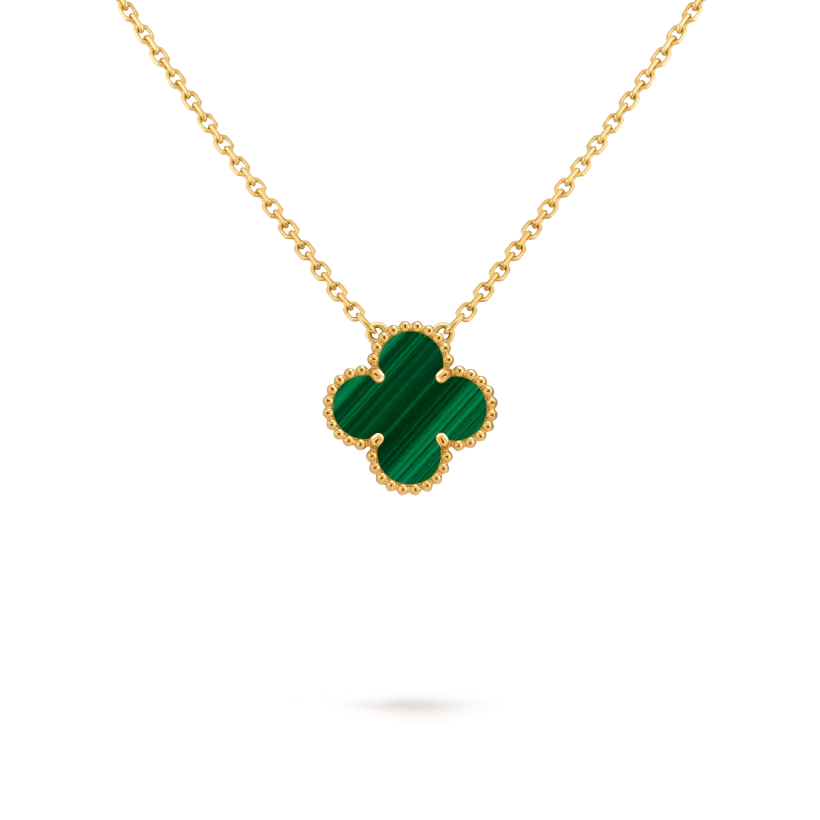 Підвіска Vintage Alhambra 1 мотив, золото , інкрустована натуральним малахітом. Довжина ланцюжка: 42 см.