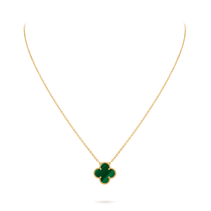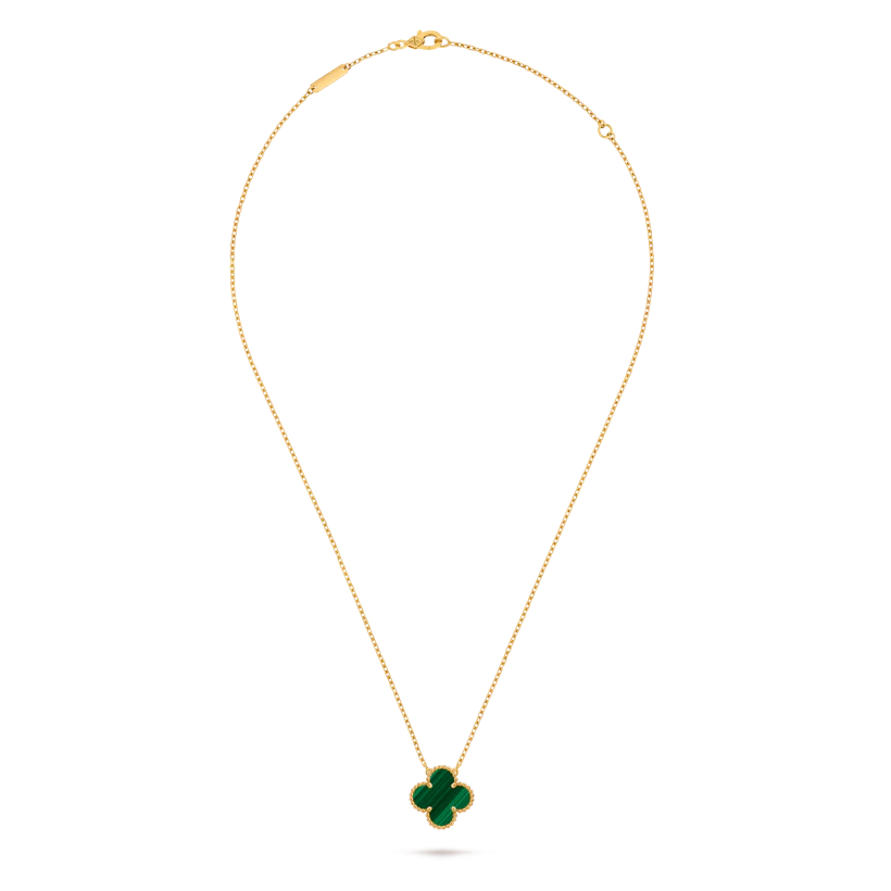 Підвіска Vintage Alhambra 1 мотив, золото 750 проби, інкрустована натуральним малахітом. Довжина ланцюжка: 42 см.