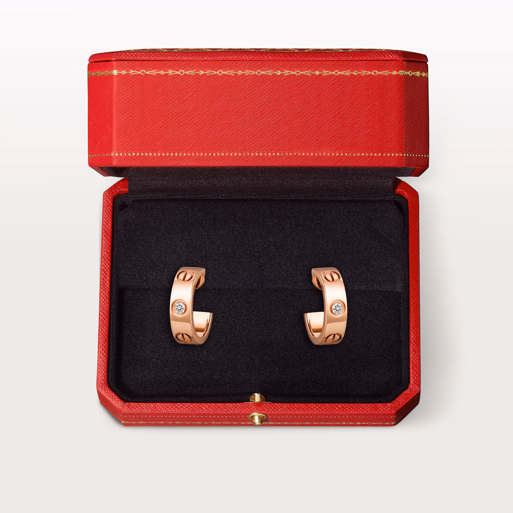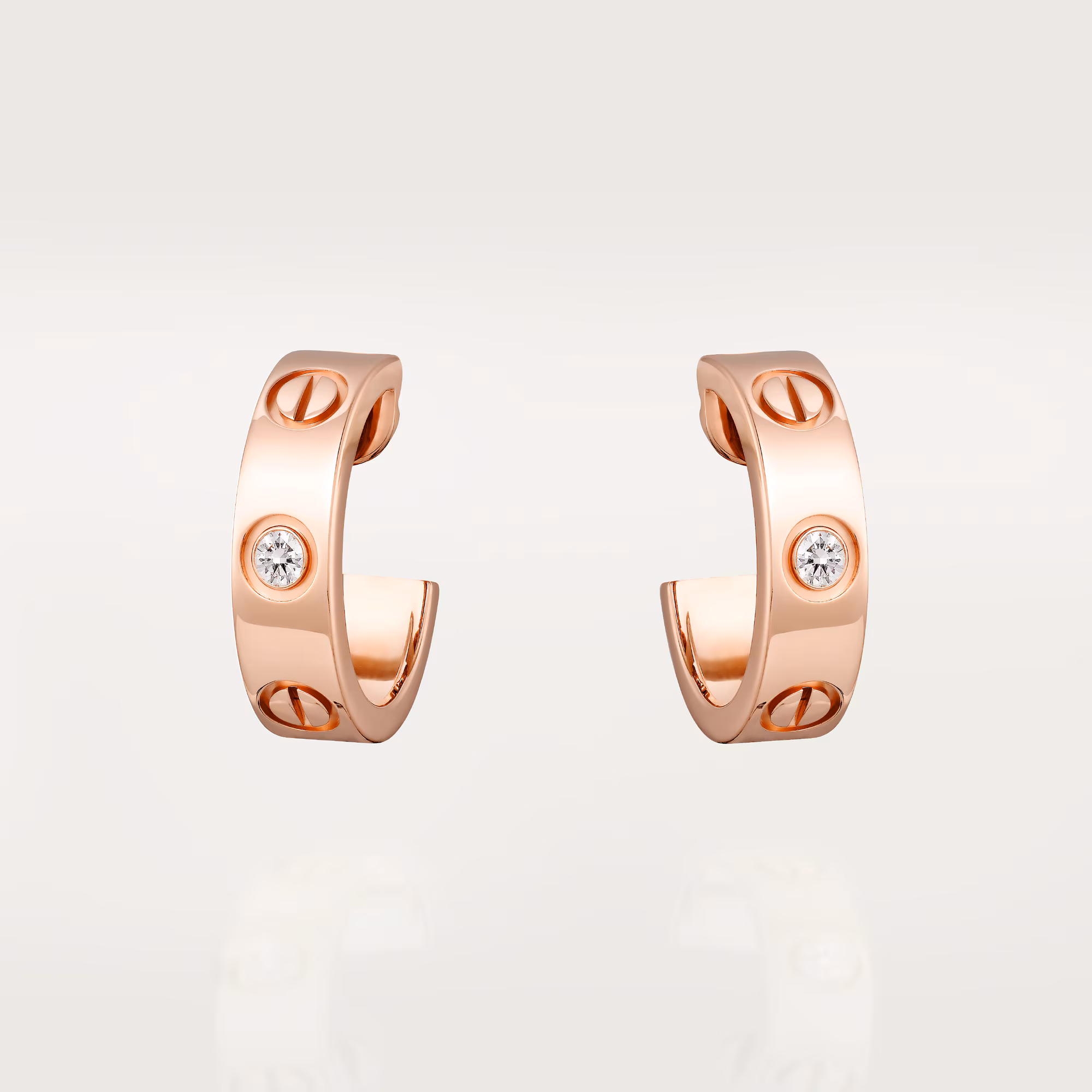 Сережки Love classic model, золото 750 проби, інкрустовані діамантами круглої огранки загальною вагою 0,15 ct. Ширина 5,7мм.